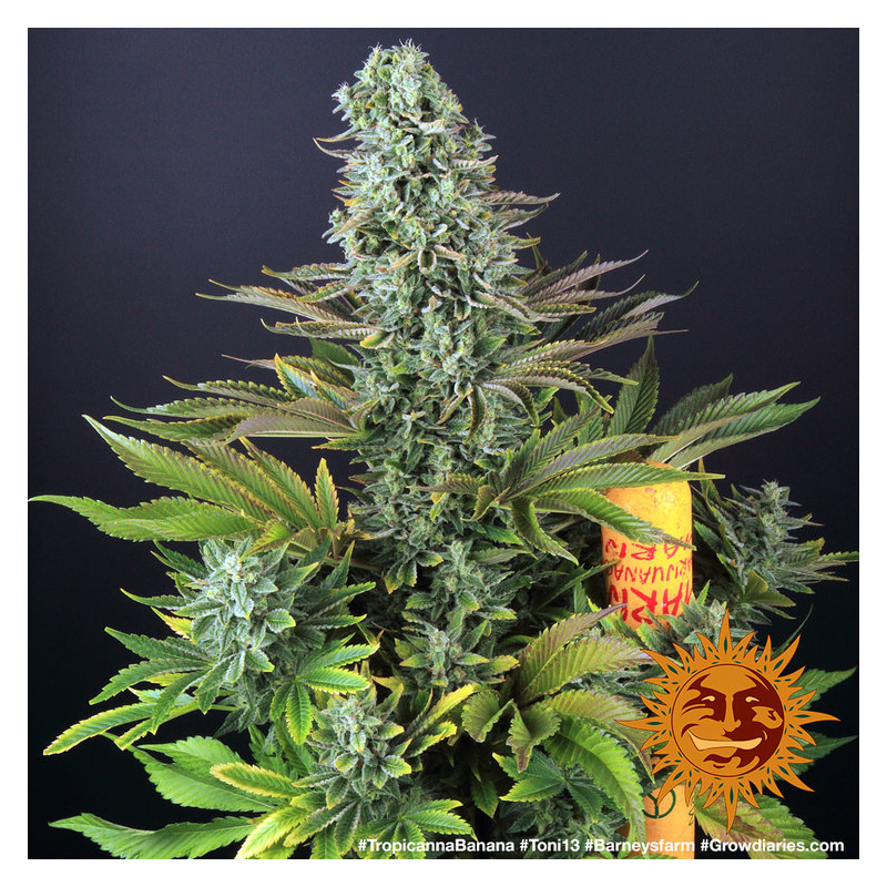Eine weitere verlockende Bereicherung unserer Cali-Kollektion. Ein faszinierender tropischer Cocktail aus frischen und fruchtigen Aromen, kompromissloser Stärke und außergewöhnlichem Ertragspotenzial. Diese bemerkenswerte Hybride ist süß, klebrig, aufgepumpt, hochwirksam und wird den Grower vor Ehrfurcht vor dieser leistungsstarken Genetik erstarren lassen. Barney’s Farm haben diese Sativa dominante Hybride (60% Sativa, 40% Indica) gezähmt und sie mit riesigen, glänzenden Trichomen und süßem tropischen Fruchtduft garniert. Eine perfekte Kombination aus Tropicanna (Girl Scout Cookies x Tangie) und einer Prise Banana Kush vereinen sich zu einem beruhigenden Indica. Lassen Sie sich von ihrer sprudelnden Persönlichkeit in eine Welt voller Euphorie und Mysterien entführen. Tropicanna Banana ist eine sehr kräftige Pflanze, die in der Lage ist, Ertragsmonster zu produzieren, wenn sie in den richtigen Händen ist. In Innenräumen sind Höhen von bis zu 1,1m mit Erträgen von 700 g / m2 (Blüte ca. 65-70 Tagen) zu erwarten. Im Freien sind Erträge von bis zu 2 kg pro Pflanze sehr gut erreichbar. THC-Werte von 22-25% sorgen für einen außergewöhnlichen therapeutischen Wert und erfrischend belebende Wirkungen, die Sie den ganzen Tag begleiten werden.