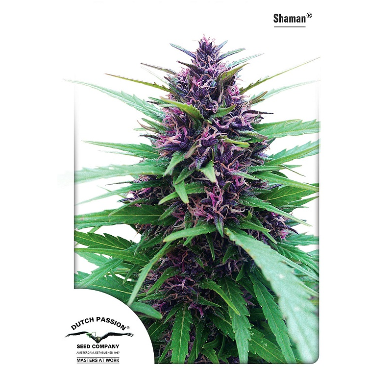 Bei Shaman handelt es sich um eine altbewährte Sorte, die ihre Wurzeln in den frühen 80er Jahren hat. Sie ist eine sehr verlässliche, robuste und hochpotente F1-Hybride, die aus einer außergewöhnlichen männlichen Purple #1-Pflanze und einer hochwertigen weiblichen Skunk-Pflanze gekreuzt wurde. Als speziell für den Outdoor- oder Gewächshaus-Grower gezüchtete Sorte ist Shaman sowohl resistent gegen Spinnmilben als auch Schimmel und Blütenfäule. Sie produziert markante, elegant aussehende Pflanzen mit stark ausgeprägten Sativa-Eigenschaften wie z. B. weiten Internodienabständen zwischen den großen Buds.