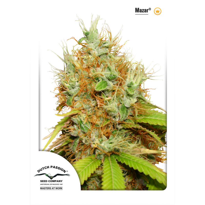 Die Mazar ist eine der stärksten und besten Varietäten, die jemals von Dutch Passion kreiert wurden. Unsere originale Mazar ist ein Klassiker aus den Achtzigerjahren und wurde aus einer speziellen Skunk#1 hergestellt, die mit einer hochgeschätzten Afghani gekreuzt wurde. Die Genetik wurde 1997 verbessert und die Mazar bleibt eine der bestverkauften Varietäten aller Zeiten. Die Mazar hat ein christbaumförmiges Aussehen, die schweren Äste garantieren gute Ernten. Die Wachstumskraft und die Zähigkeit machen die Mazar zu einer guten Wahl für erfahrene Grower. Die Mazar ist eine echte Afghani-Haschpflanze mit einer extrem hohen Harzproduktion und großer Wirkstärke. Es kann sein, dass sie am Ende der Blüte Stütze benötigt und sie produziert beachtlich starke Düfte.