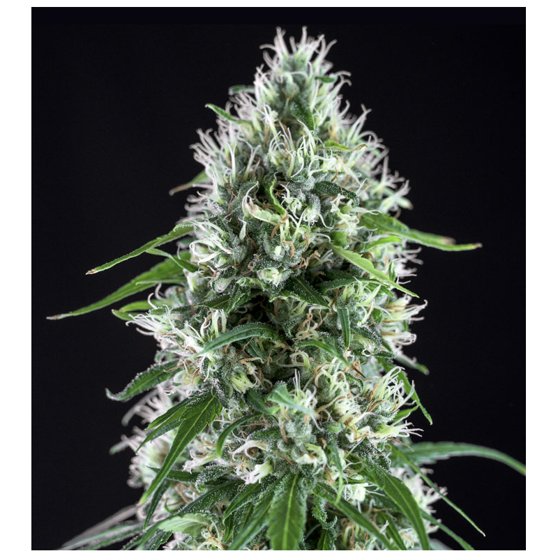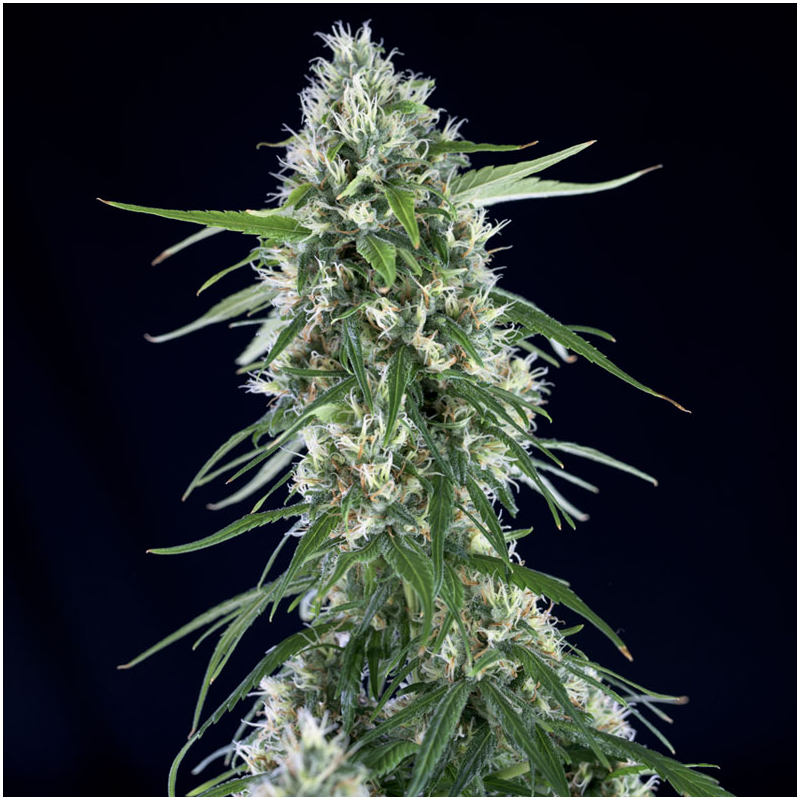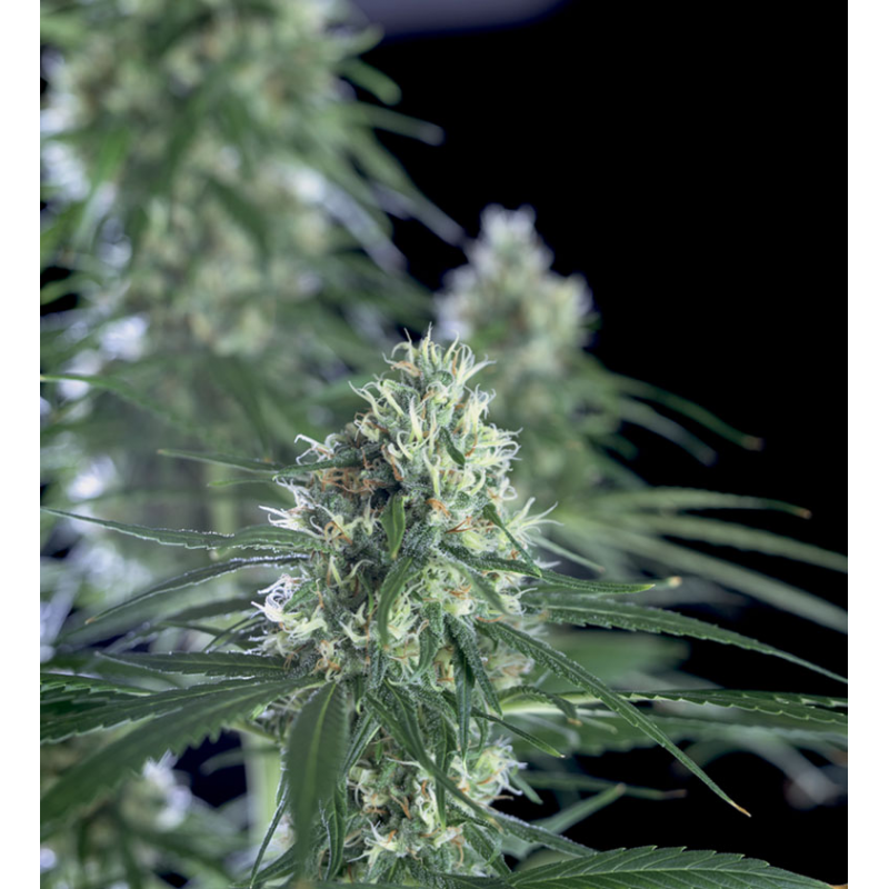 Die feminisierte, sativa-dominante Sorte wächst hoch und entwickelt kompakte, schwere Buds voller Harz – ungewöhnlich für eine Sativa. Indoor erreicht sie ihre volle Reife nach etwa 70–75 Tagen, wobei sich gegen Ende die Blütenkelche spiralförmig eindrehen – ein optisches Highlight.
