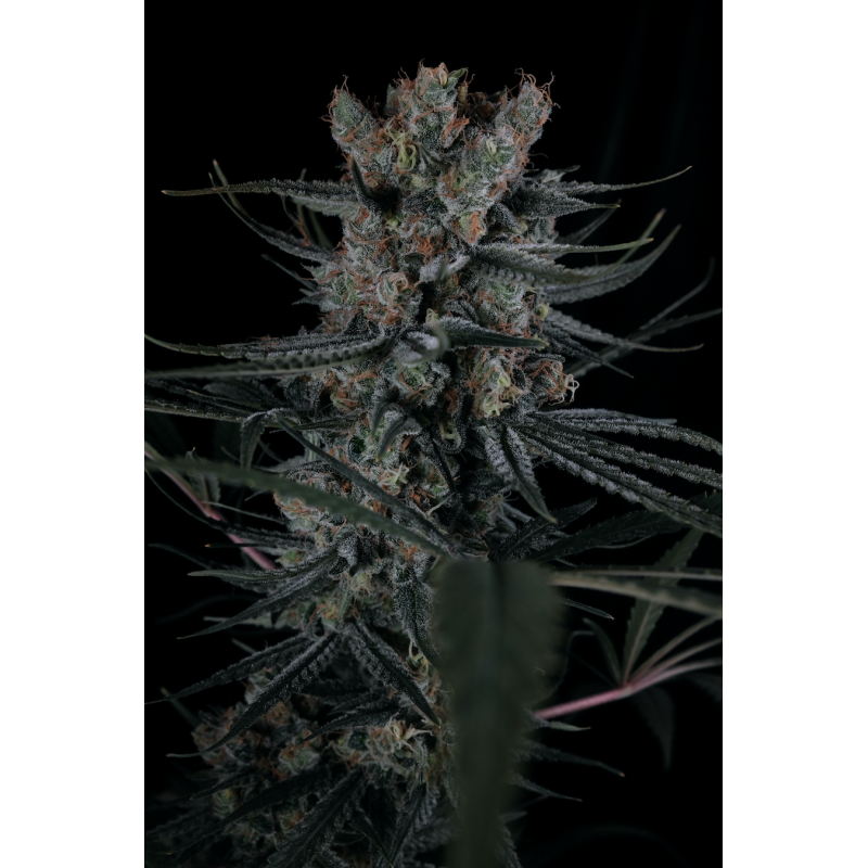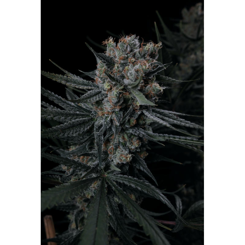 Northern Lights, White Widow, Skunk, Erdbeer, Harlox, alle diese Sorten sind in dieser Kreuzung drin. Die Courtesy x Dorothy ist harzig wie eine White Widow, selbst grosse Blätter sind mit Harz bedeckt.