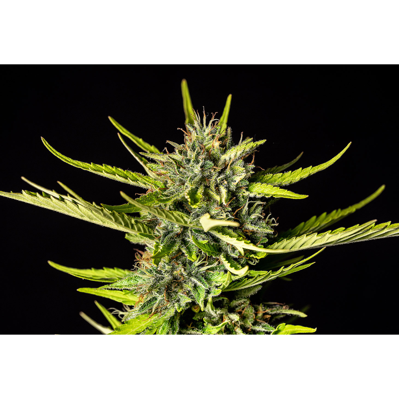 Im Freien kann sie eine Höhe von einem Meter und sechzig Zentimetern erreichen, mit einer Sativa-Stärke, die sie auch mit schnell blühenden feminisierten Sorten verbindet. Ab März gepflanzt, liefert sie im Oktober bis zu 300 Gramm pro Pflanze, wenn sie an einem guten, sonnigen Standort steht. Großartig für Guerilla-Grower.