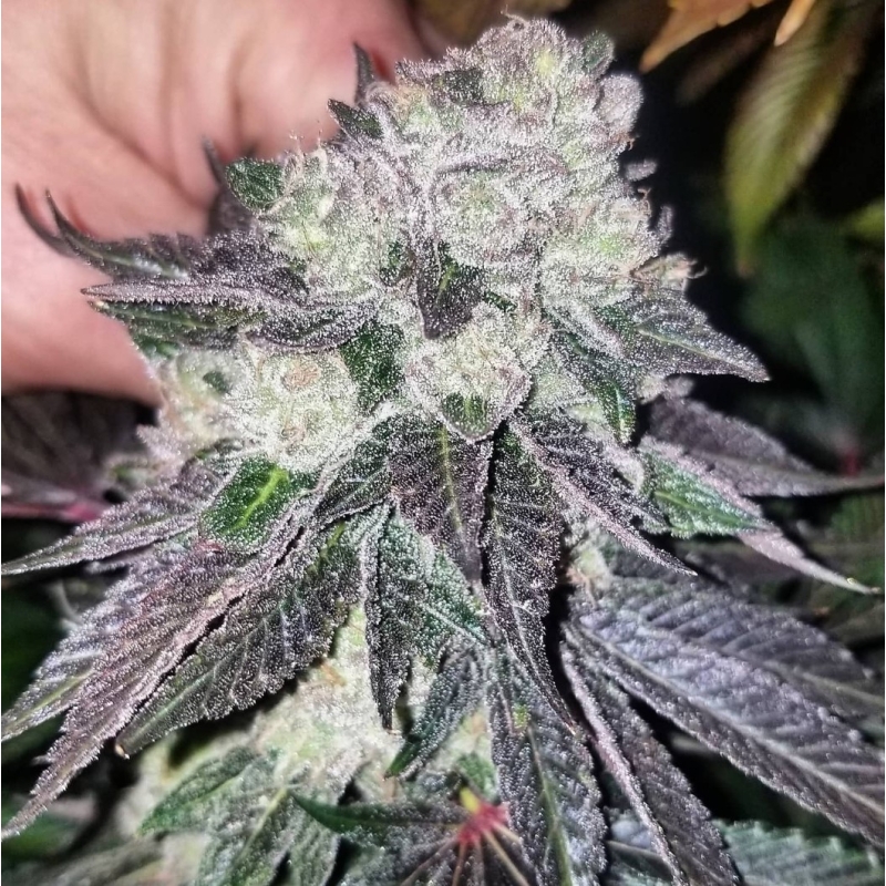 "Zephyr war ein majestätischer und schöner Hund, mit dem ich das Glück hatte, einen Teil meines Lebens zu verbringen. 12 gute Jahre. Sie war wirklich eine Königin im Reich der Hunde und in meinem Herzen. Die königlichen und doch dezenten lila- und rosafarbenen Töne dieser Pflanze ließen mich sofort an sie denken. Diese Kreuzung ist ein perfektes Beispiel dafür, was dieser Chemdog-Rüde bewirken kann. Verbesserte Struktur und Potenz unter Beibehaltung der prächtigen Farben. Eine schöne Mischung aus schwerem Chemdog und erdiger Weintraube. Die Wirkung ist körperlich entspannend. Verzweigt, aber nicht viel Streckung auf dieser Sorte."