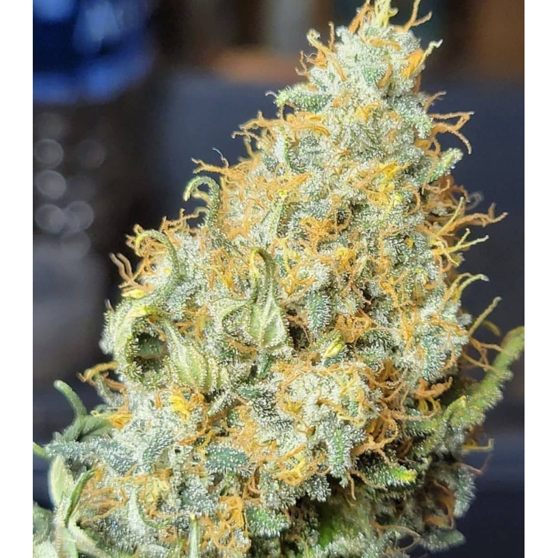 "Die Skelly Hash Plant, auch bekannt als The Puck, ist die Haschpflanze schlechthin. Kurz, stämmig und durchtränkt mit feuchten Harzdrüsen. Die Legende besagt, dass die Skelly HP von Colorado und die Dogbud sich zusammengetan haben, um die Königin selbst, Chemdog91, zu erschaffen. Wir werden es wohl nie erfahren, aber diese Kreuzung steht für sich allein. Kurze Pflanzen, die sich nicht strecken. Kräftige, gut geformte Nugs."