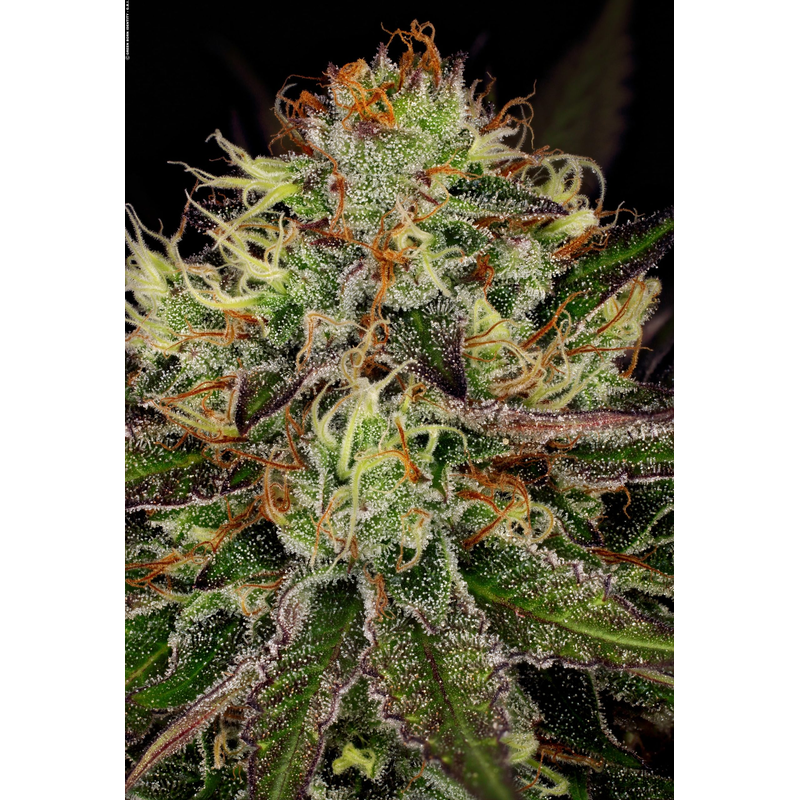 Chocolate Wafflez produces compact and well branched plants but show their sativa credentials during flowering with a surge of growth. Branches extend outwards, with the lateral branches puffing up with fat crystalline buds which are more indica in characteristic. The resinous credentials of this plant are already on display after just six weeks of flowering, with a royal resin coating that shimmers like silver before turning heavenly white to close the show at harvest time.