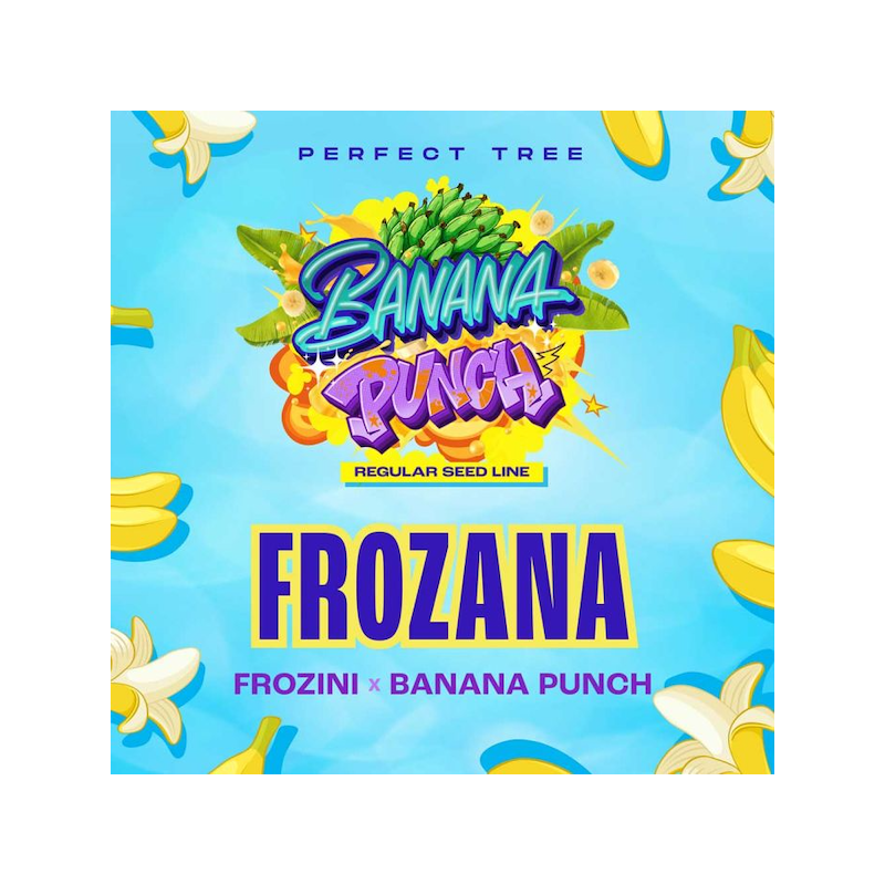 Frozana reguläre Hanfsamen von Perfect Tree ist eine der herausragenden neuen Sorten aus ihrer exotischen neuen Banana Punch Linie, die für 2024 enthüllt wurde.