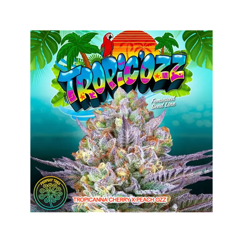 TropicOzz ist ein einfach zu züchtender Indica-Sativa-Hybrid, der es jeder Art von Züchter ermöglicht, mit Leichtigkeit Ernten von höchster Qualität zu genießen. Sie entstand aus der Kreuzung von Tropicana Cherry, die Noten von roten Früchten und Zitrusfrüchten vereint, mit Peach Ozz, die für ihren fruchtigen Pfirsichgeschmack bekannt ist.