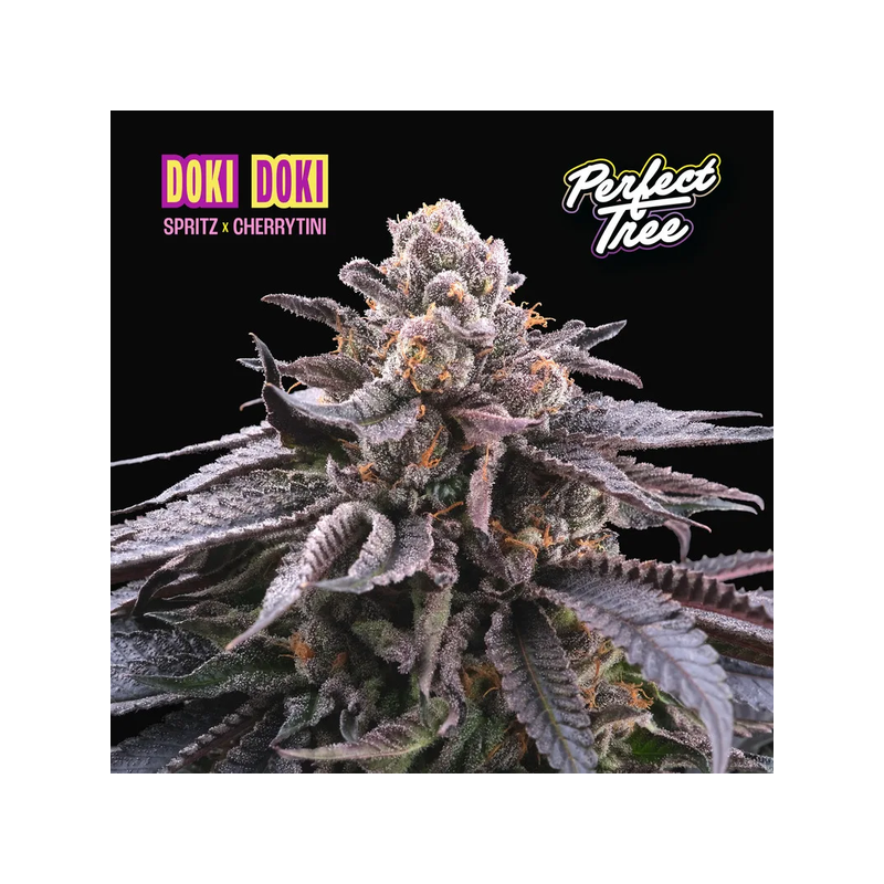 Doki Doki von Perfect Tree ist ein feminisierter Hybrid aus den hauseigenen Genetiken Spritz und Cherrytini. Diese Sorte wurde speziell für Liebhaber komplexer Fruchtaromen und extrem harzreicher Blüten gezüchtet – perfekt geeignet für hochwertige Extraktionen.