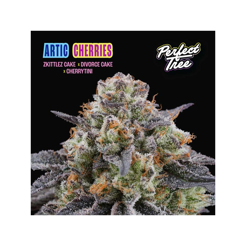 Arctic Cherries von Perfect Tree ist ein echtes feminisiertes Juwel, gezüchtet aus einer beeindruckenden Kombination erstklassiger US-Genetik: (Zkittlez Cake x Divorce Cake) von Jungle Boys, gekreuzt mit der aromatischen Cherrytini-Selektion von Perfect Tree.