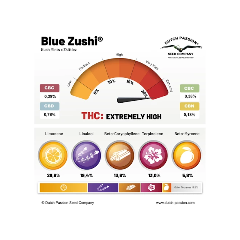 This puts Blue Zushi firmly in the coveted top category of cannabis seeds with exceptional THC potential.