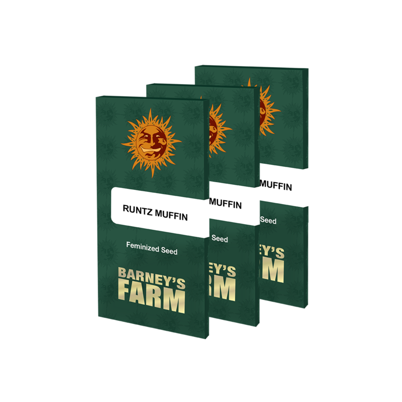 Runtz Muffin de Barneys Farm est le résultat d'un croisement minutieux de Zkittlez x Gelato. Ce descendant Cookies gratifiant vous ravira avec ses saveurs remarquables et sa nature puissante et équlibrée. Ensuite, notre labo a délicatement fusionné notre punch Orange -- ce qui n'accroît pas seulement le taux d'Indica, mais offre des avantages significatifs en termes de production.Goûtez ce régal et vous serez enveloppé dans un couverture aux doux parfum extatique de lavande avec une légère note d'agrumes. La fumée dense et pénétrante déclenche un high fruité, joyeux et euphorique qui dure toiute la journée.Evacuez vos soucis et vos tensions dans une mer somptueuse de parfums fruités. Les fleurs dégoulinent leur résine en un syrop planant qui peut atteindre 29% de THC. Découvrez ces arômes qui vous rappelleront les confiseries de votre enfance. Grâce à une multitude de terpènes succulents, ce délice dégage parfois en fin de floraison des odeurs d'oranges confites. Des teintes violettes et vert foncé apparaissent sur les fleurs mûres, un spectacle à voir : les cristaux de résine scintillent comme des joyaux. En extérieur, vous pouvez espérer des hauteurs de 2 mètres, tandis qu'en intérieur les plants atteindront 110-120 cm après 4 semaines de végétation. Cet hybride équilibré et déluré vous transportera à un niveau de relaxation époustouflant, vos tensions mentales seront dissipées. Toute la journée, voius serez protégés de tout souci -- à l'abri dans un cercle lumineux de positivité. Runtz Muffin vous permet d'explorer des voies nouvelles, de calmer vos pensées en les transformant en rêves paisibles et philosophiques qui apaisent votre esprit. Vous serez comme un beau ruisseau de montagne étincellant au soleil.