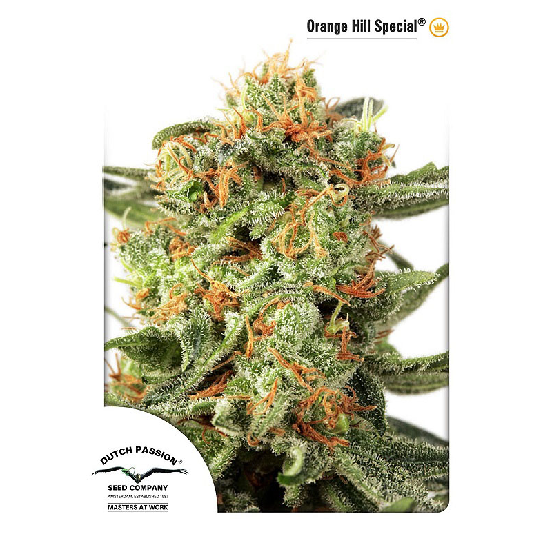 Orange Hill Special, une sélection Orange Skunk exceptionnelle, est un nouveau membre de notre famille « Orange ». Nous l’avons développée à partir de génétiques de nos adorables variétés Orange Bud et Californian Orange, deux variétés solides, très appréciées par nos clients et qui remontent aux années 80. Le processus d’élevage s’est développé sur 6 générations, pour garantir une Orange Skunk stable et forte, avec un abondant duvet orange au moment de la récolte, une production importante et un goût d’agrumes. Il s’agit d’une variété 50% Indica / 50% Sativa avec un niveau de THC de 21% qui produit un fantastique high avec un stone corporel fort et agréablement délassant.